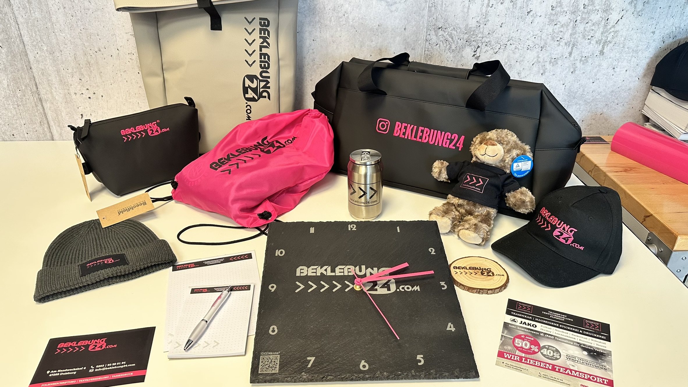 Wir bei Beklebung24.com freuen uns darauf, eure Projekte zu verwirklichen. Egal, ob es um die Erstellung eines eigenen Onlineshops, die Schaffung einer neuen Kollektion oder die Bestickung von Arbeitskleidung geht – wir stehen mit Rat und Tat zur Seite.
