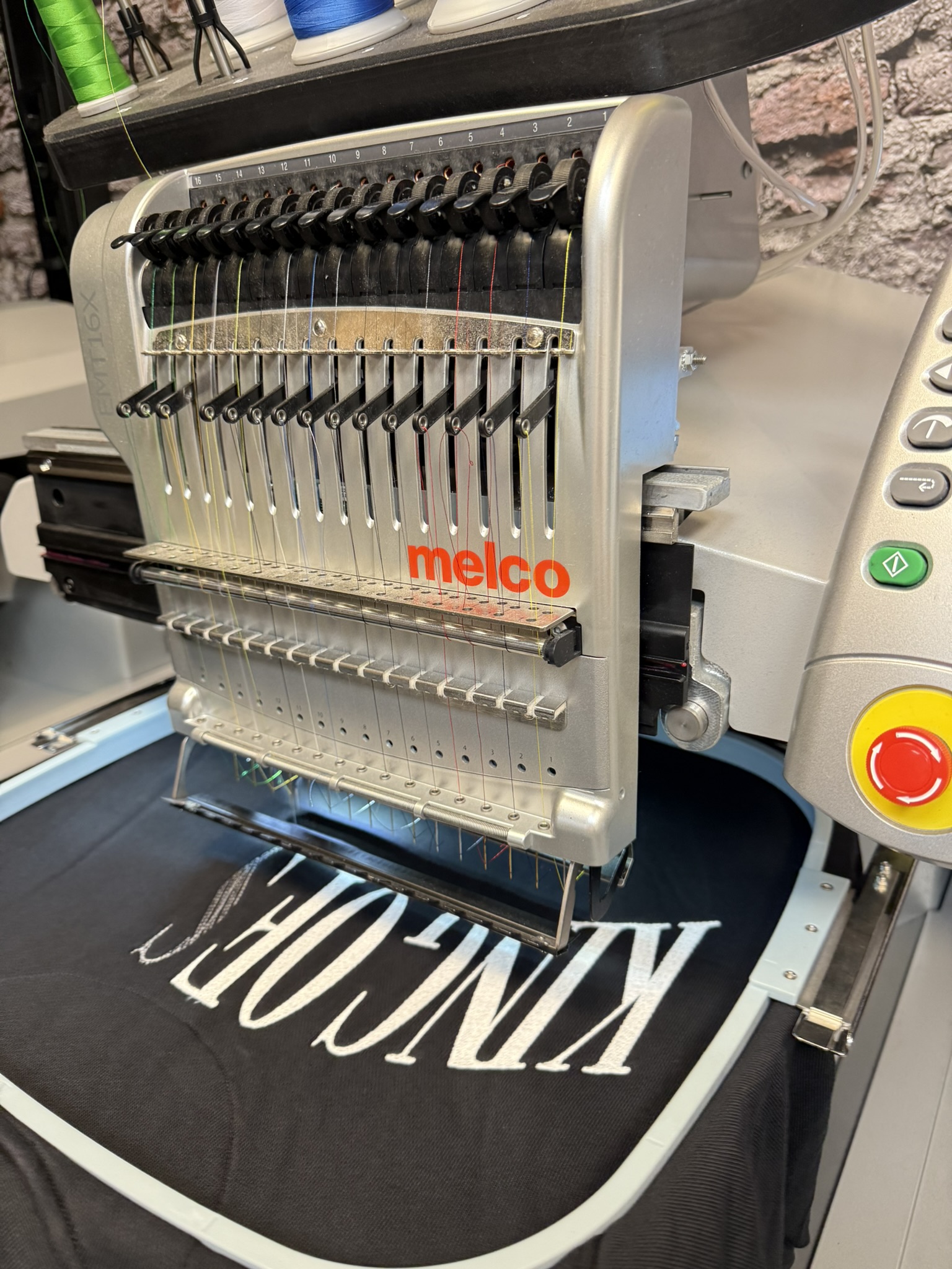 Sarah ist an unseren vier Stickmaschinen eine echte Spezialistin und arbeitet Aufträge schnell und
